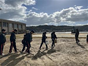 | 避難者支援班(呼子地区)避難者33人 呼子へ帰るため、福富ゆうあい館を出発 |