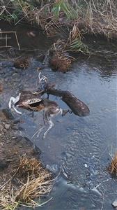 | 奥畑川、角がお互いにからまつてかわいそうな運命でした。この死骸はどうなるのでしょう。 |